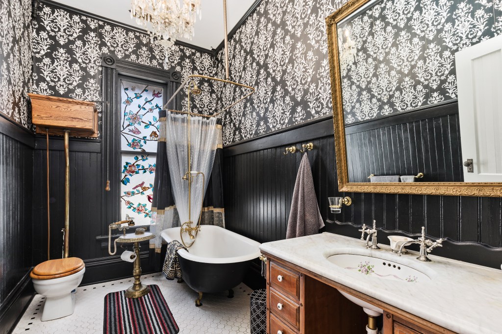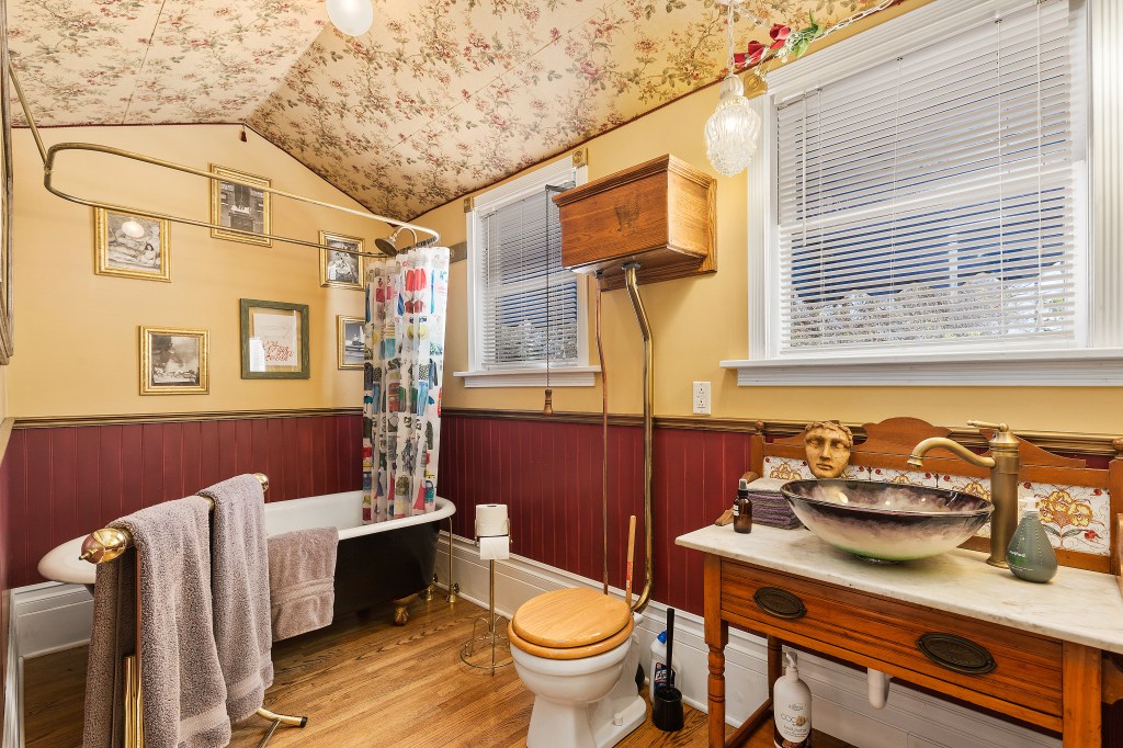 There are six bedrooms and three bathrooms in the Magee home including a full bathroom and bedroom downstairs. The second-floor features four spacious bedrooms and a large common bathroom. The main bedroom boasts, oversized sash windows and a full walk-in closet. All the other bedrooms on this floor are large with high ceilings and oversized windows. The front bedroom has a fireplace and access to the second-floor balcony through a unique sash window style door. The third floor has been converted to a complete en-suite apartment / studio (Many Victorians do not have a finished 3rd floors). This is the perfect attic retreat for your office, art studio, teenager hang out or whatever else you can dream of. There is a whole house fan in this space, as well as supplemental air conditioning to keep the space comfortable in the summer.