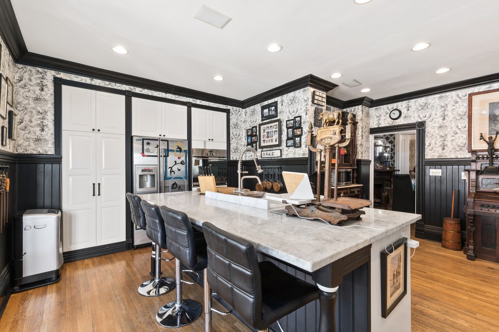 While the home has been restored to reflect its rich history, there are modern amenities that have been added to bring this home into the twenty-first century. The kitchen has a 6 burner Viking cook top & hood, a Bosch dishwasher, refrigerator, and an oversized farmhouse double sink, and custom cabinetry with soft close hinges.